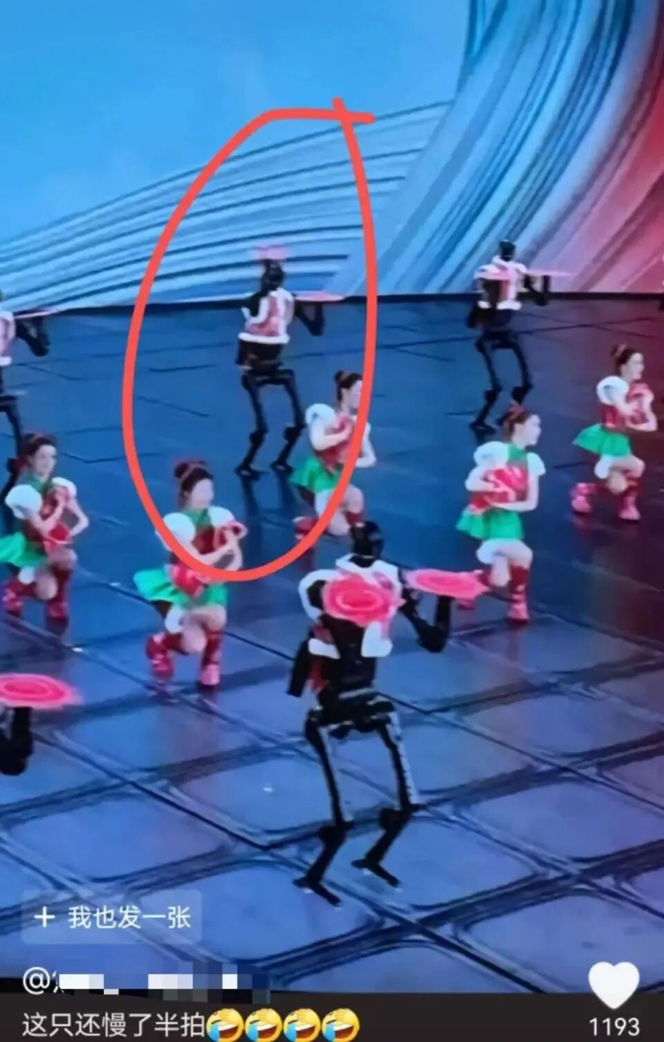 还有细心的观众发现,在表演的时候,有个别机器人出现“失误”,比如收手绢时慢了半拍。工作人员表示,确实在表演里加了一些搞笑的“小彩蛋”,人形机器人的“怪异”“犯错”或“故障”能给大家带来欢乐。